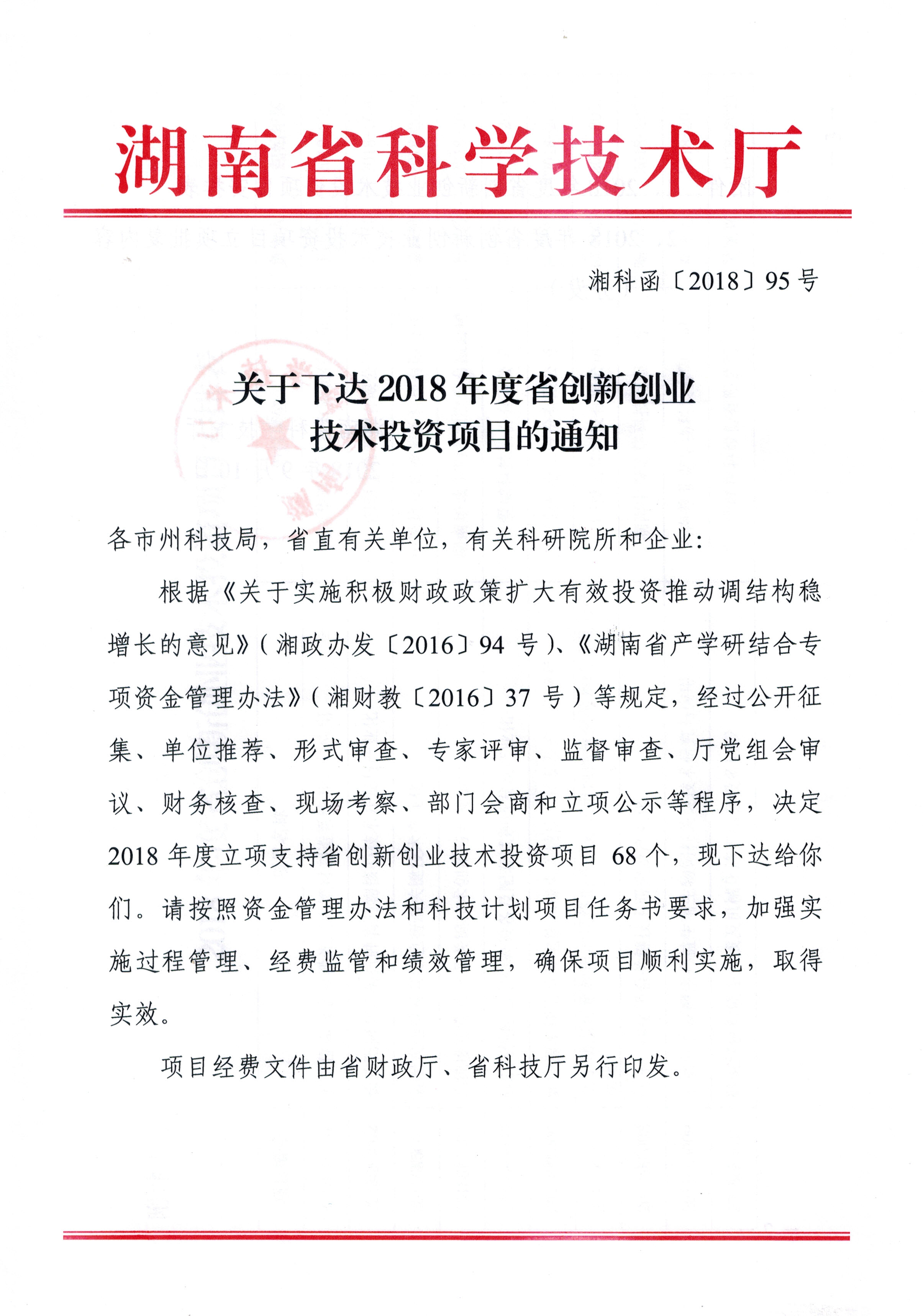 2018年 省科技厅创新创业投资项目 (二)